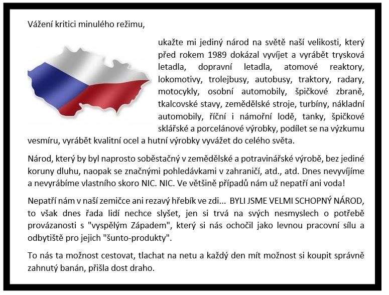 Vypadá to, že dopadneme z těch okolních zemí nejhůře. Tady je většina lidí bez logického myšlení a vlastní mozky jim již nejsou k ničemu. Člověk to opravdu nerad říká, ale 10 % logicky uvažující populace změnu neprovede. V tomto ohledu začínáme být opravdu unikátem, parchanti mohou s lidmi zamést jak se jim zachce a doslova jim nakydat na hlavu a tito zotročení příslušníci kdysi hrdého husitského národa jen přitrouble čumí a dávají palici na špalek. Na tento rozkradený národ je nyní skutečně smutný pohled.