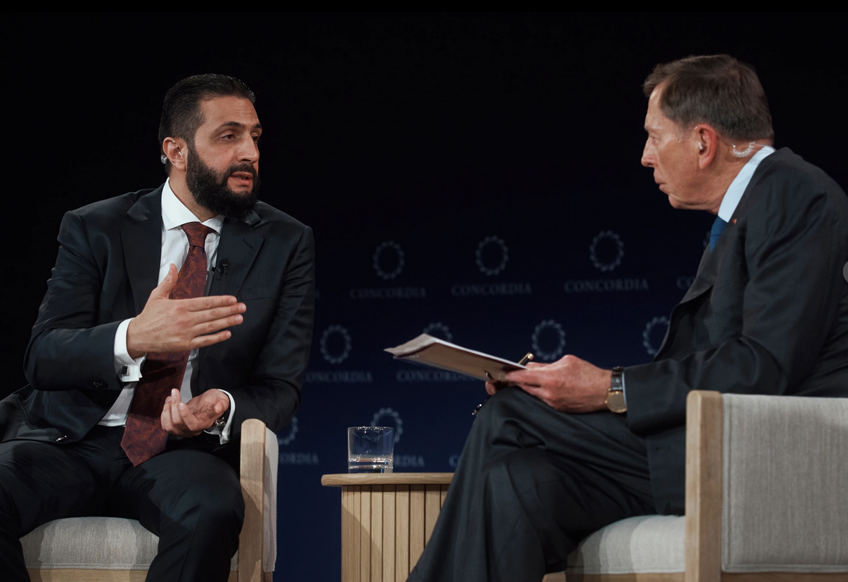 Al-Šaraa uvedl toto prohlášení v rozhovoru s generálem ve výslužbě Davidem Petraeusem, který velel americkým jednotkám ve válkách v Afghánistánu a Iráku a dříve působil jako ředitel CIA.
